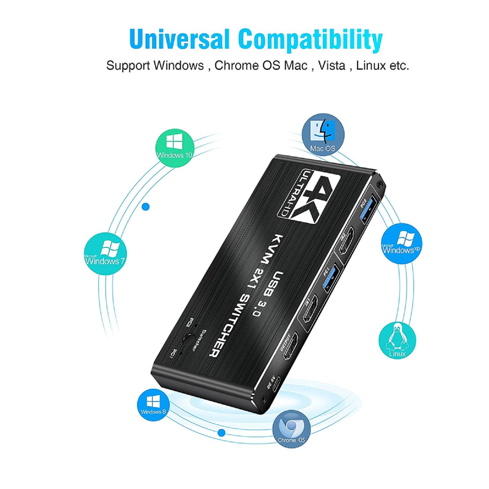 1. 2 Port KVM Switch HD 4K Scanner USB 3.0 KVM Switcher 2 in 1 Out USB for Mouse Keyboard for Win7 Win10 for MAC for PlayStation