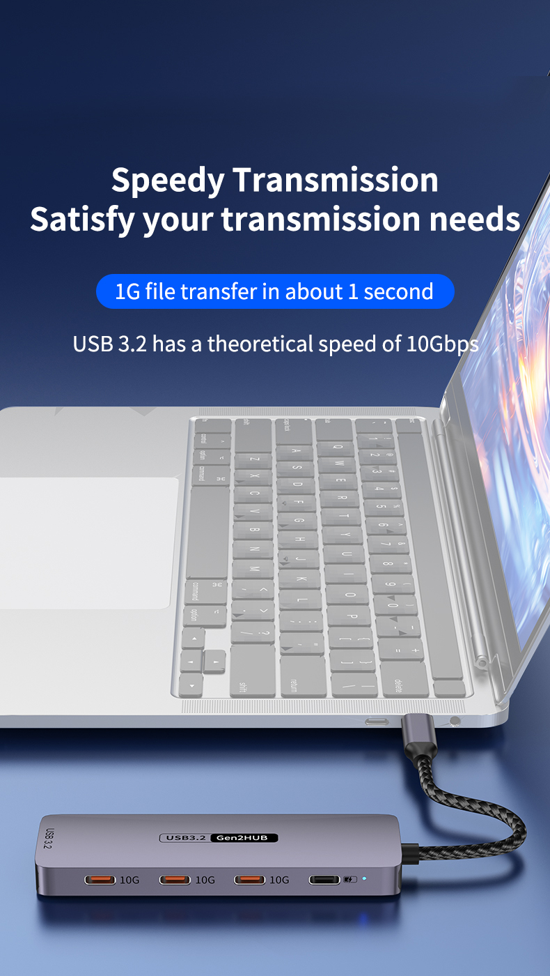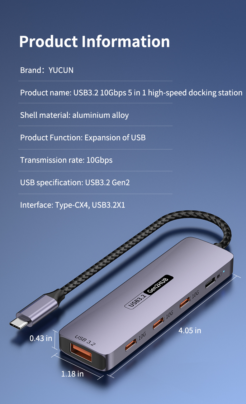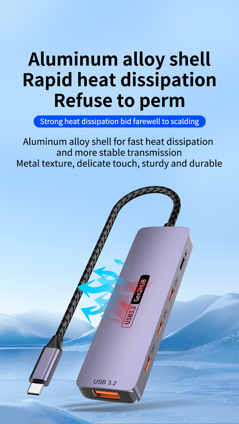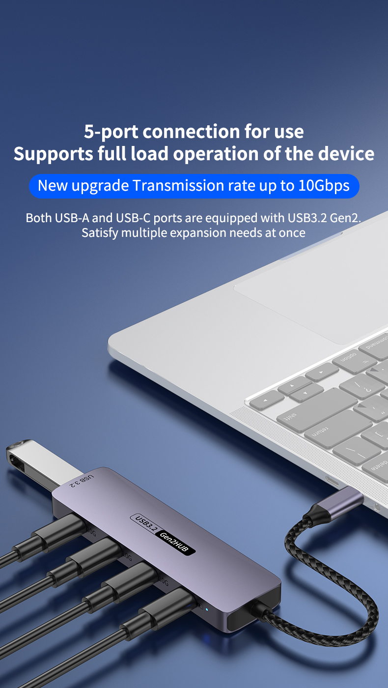 Type-C 10Gbps to PD Charging Hub USB 3.2 Extension Dock 5-Port Hub for Laptop, Tablet & Mobile Phone USB 3.2 Hub Docking Station, 4C1A with PD 100W / 10Gbps