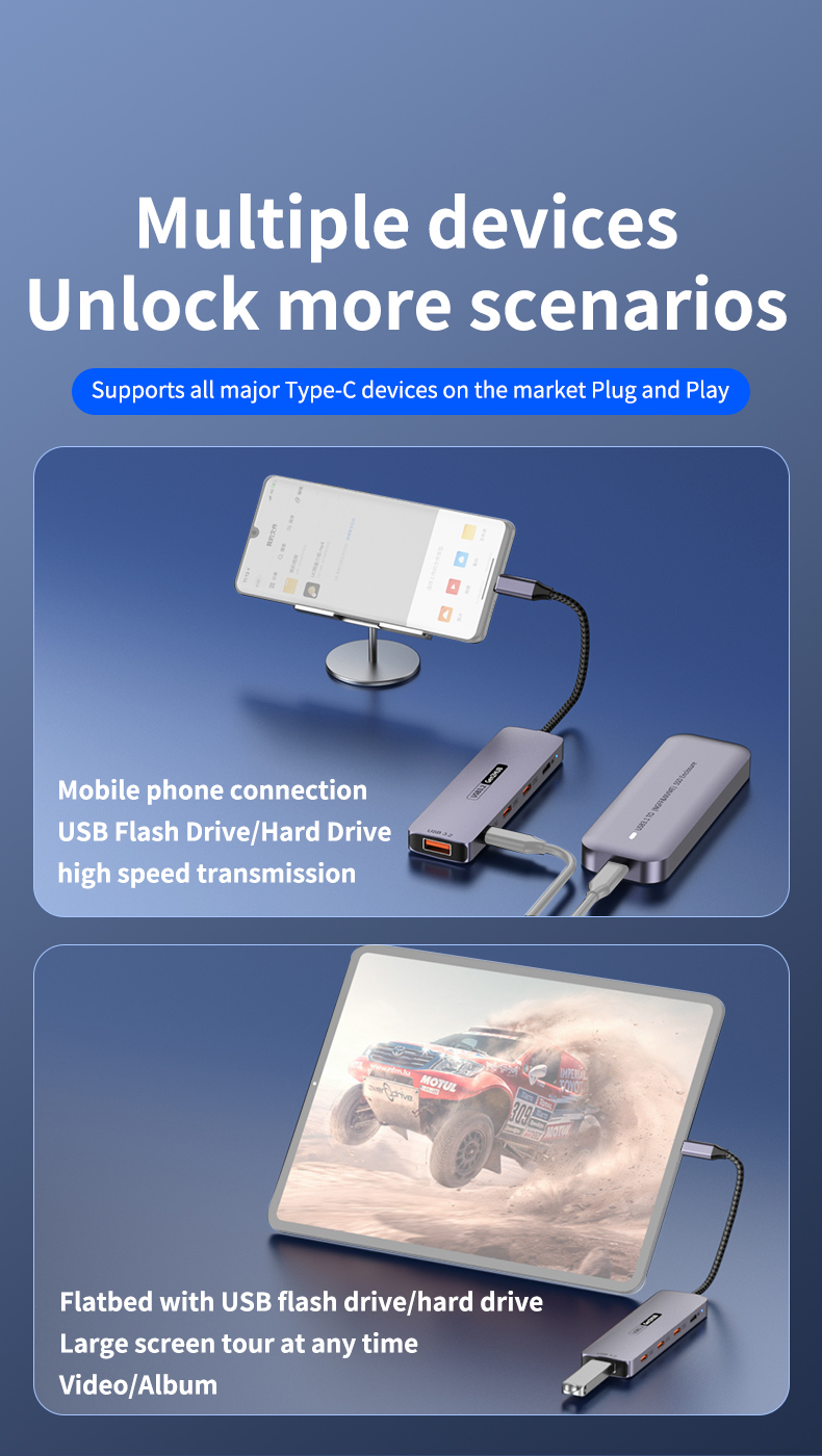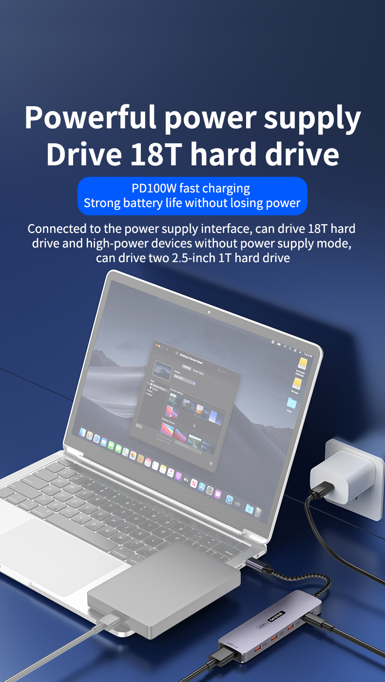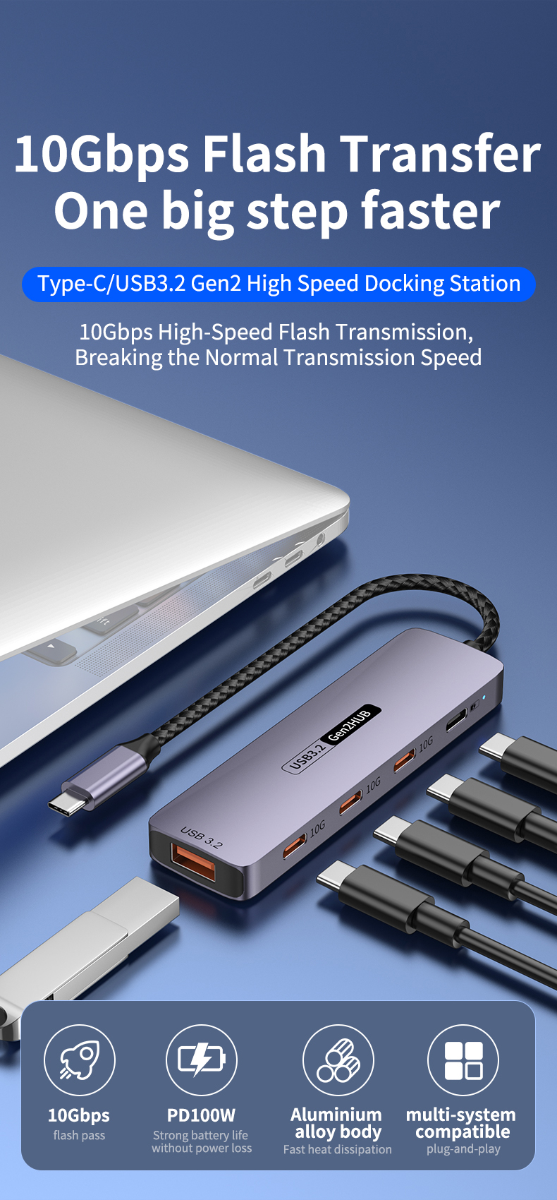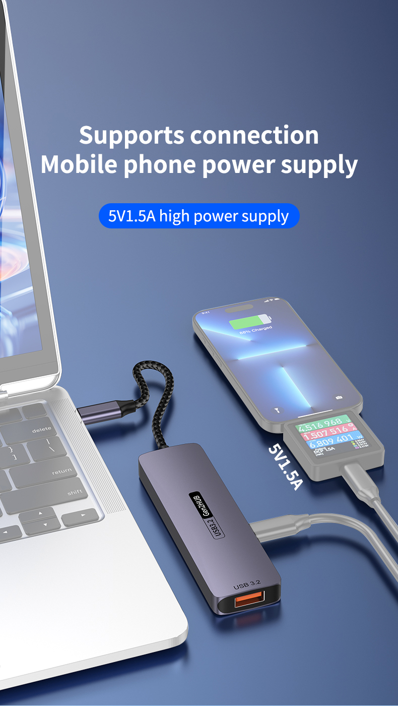 Type-C 10Gbps to PD Charging Hub USB 3.2 Extension Dock 5-Port Hub for Laptop, Tablet & Mobile Phone USB 3.2 Hub Docking Station, 4C1A with PD 100W / 10Gbps