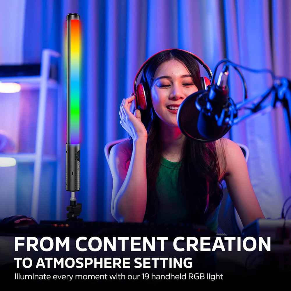 Wide Color Temperature Range & RGB Lighting: This light stick covers a broad color temperature range from 3000K to 8500K, ensuring it suits various lighting conditions. It also boasts RGB color tone capabilities, with up to 16 million color combinations available for creative lighting effects. The CRI of 85 and TLCI of ≥98 ensure accurate color reproduction for specialty results.