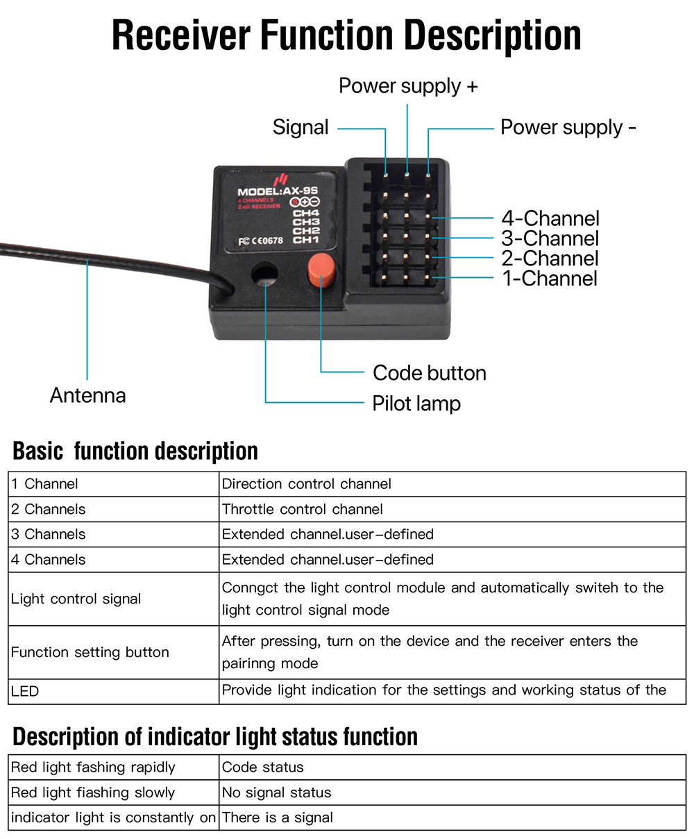 3. Equipped with AX-9S 4-channel receiver.