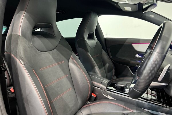 This 2023 Mercedes Benz CLA220d AMG Line Executive boasts a clear vehicle history and has had only one owner from new. This stylish coupe features the desirable AMG Line trim, powered by an efficient 2.0 litre Euro 6 diesel engine. Its striking appearance is enhanced by the Night Package, high gloss black window line and beltline strips, all complemented by aerodynamically optimised 18 inch AMG 5 twin spoke alloy wheels painted in black with a high sheen finish. Inside, you will find a multifunction 3 spoke steering wheel trimmed in leather, complete with perforated leather in the grip area and a flattened bottom section for a sporty feel. Experience impressive performance with this Mercedes Benz CLA, achieving 0 to 60 miles per hour in just 7.2 seconds, demonstrating its dynamic capabilities. This acceleration figure indicates a superior driving experience compared to many other vehicles in its class. The combination of its sophisticated design, premium AMG Line features, and the powerful yet economical diesel engine makes this CLA a compelling choice for those seeking both style and substance. Lifetime warranty available on this car, plus a £1,000 finance contribution when you part exchange. Voted UK Car Supermarket of the Year two years running, we offer 0% finance, part exchange, and lifetime warranties across our entire range. Every car is thoroughly inspected before sale and comes with a full history check, so you can buy with complete peace of mind. Buy with confidence on our best finance rates. Proud winners of the CarGurus Top-Rated Dealer 2022 and the MotoNovo Extra Mile Award. .18in Alloy Wheels - AMG 5-Twin Spoke - Light - Aerodynamically Optimised - Painted in Black with High-Sheen Finish, ABS - Anti-Lock Braking System with BAS - Brake Assist, Active Bonnet - Pedestrian Safety Measure which Detects an Impact and Raises Bonnet by 65mm, Active Brake Assist, Active Lane Keeping Assist, Adaptive Brake Lights, Air Conditioning - Air Vents with Surround in Silver Chrome, Air Conditioning - THERMOTRONIC Luxury Automatic Climate Control - Two-Zone with Display, Airbag - Kneebag for Driver, Airbags - Dual-Stage - Driver and Front Passenger, Airbags - Head and Sidebags - Driver and Front Passenger, Airbags - Windowbags for Driver and Front Passenger, Alarm System with Immobiliser and Interior Protection - Thatcham Category 1, AMG Bodystyling, ARTICO Man-Made Leather-MICROCUT Microfibre - Black with Contrasting Topstitching in Red, ATTENTION Assist, Automatic Child Seat Recognition Sensor - Pressure Sensor, Beltline Strips - High Gloss Black, Bonnet with Power Domes, Brake Calipers with Mercedes-Benz Lettering on Front, Brake-Pad Wear Warning Indicator, Braking - Adaptive Brake Assist with HOLD Function and Hill Start Assist, Brushed Stainless Steel Sports Pedals with Rubber Studs, Bumpers - Body Coloured, Car Wash Mode, Centre Armrest - Front with Stowage, Childproof Locks - Manually Operated for Rear Doors and Electrically Operated for Rear Power Windows, Crash-Responsive Emergency Lighting, Cruise Control with Limiter, DAB Digital Radio Tuner, Diamond Radiator Grille with Pins in Chrome - Single Silver Louvre in High-Gloss Black, Direct-Steer System, Door Handles - Body Coloured, Door Mirrors - Electrically Adjustable and Heated with Integrated LED Indicators, Door Sills - Illuminated Front Door Sills with Changeable Cover, Dual Bluetooth Interfaces, Dynamic Select with a Choice of Driving Modes - ECO-Comfort-Sport and Individual, Electric Parking Brake, ESP - Electronic Stability Programme with ASR - Acceleration Skid Control, ESP Curve Dynamic Assist, Exhaust System - 2 Visible Tailpipe Trim Elements and Rear Apron with Trim in Chrome, First Aid Kit and Warning Triangle, Floor Mats with Stitched AMG Lettering, Glass - Rear Windscreen - Heated with Timer Control, GUARD 360 Vehicle Protection, Headlamp Assist - Automatic Headlamp Activation, Headlamps - LED High Performance with Integrated LED Daytime Running Lights, Heated Front Seats, Hey Mercedes - Voice Activation, High Level Third Brake Light - LED, Instrument Cluster - Fluid Lev