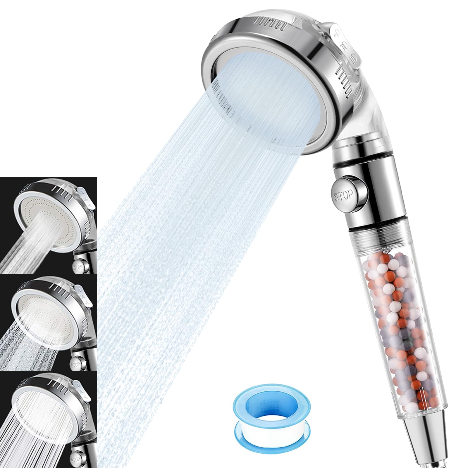 3 TYPES OF FUNCTIONAL FILTRATION BEADS - The filtration beads in 3 colors provide multi-layer filtration for tap water. It removes impurities and chlorine and helps greatly soften hard water. This filtered showerhead helps hair loss, dry scalp, itchy skin and dandruff. HIGHLY RECOMMENDED FOR HARD WATER AREAS!