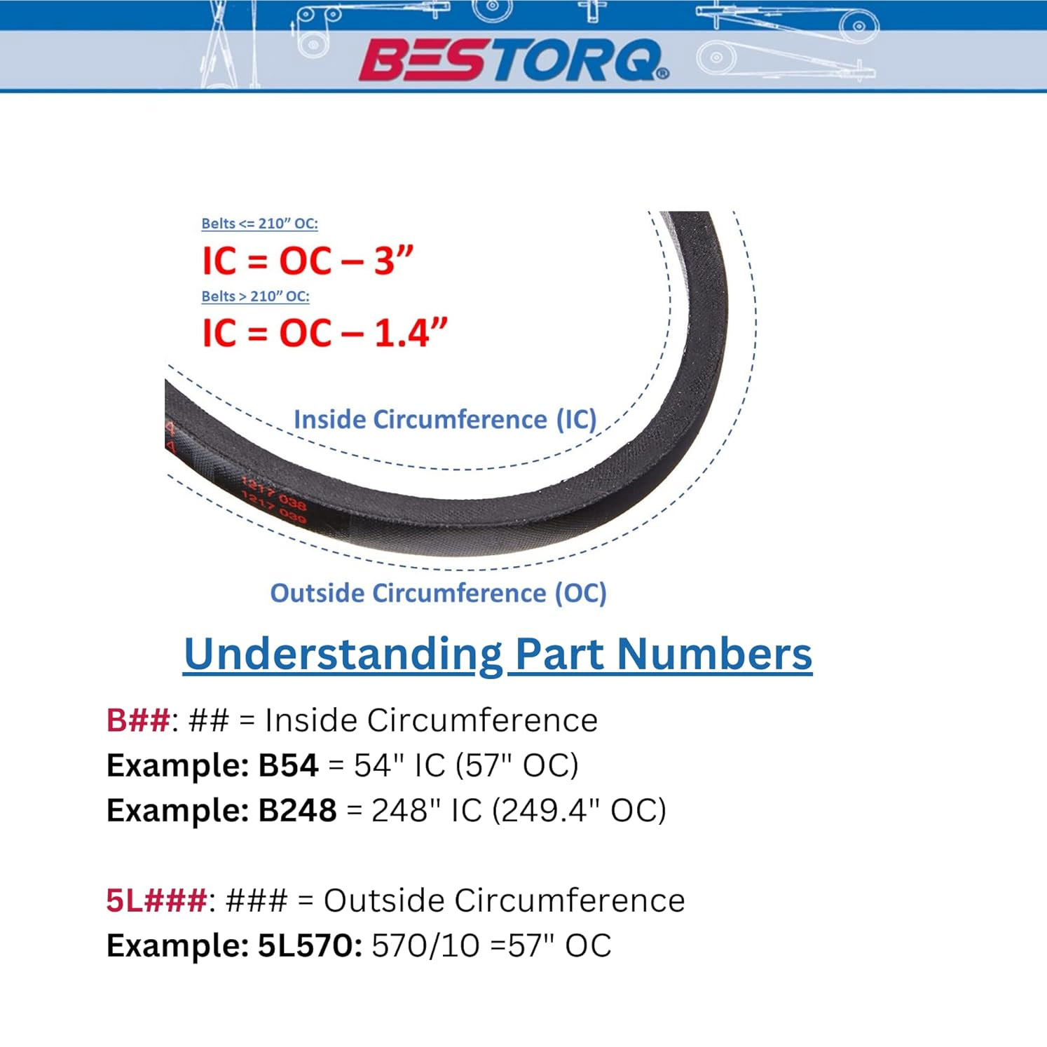 This listing is for a brand new B section V belt. This Belt number is a B48 also works as a 5L510. This belt measures 5/8" wide x 51" long outside diameter.