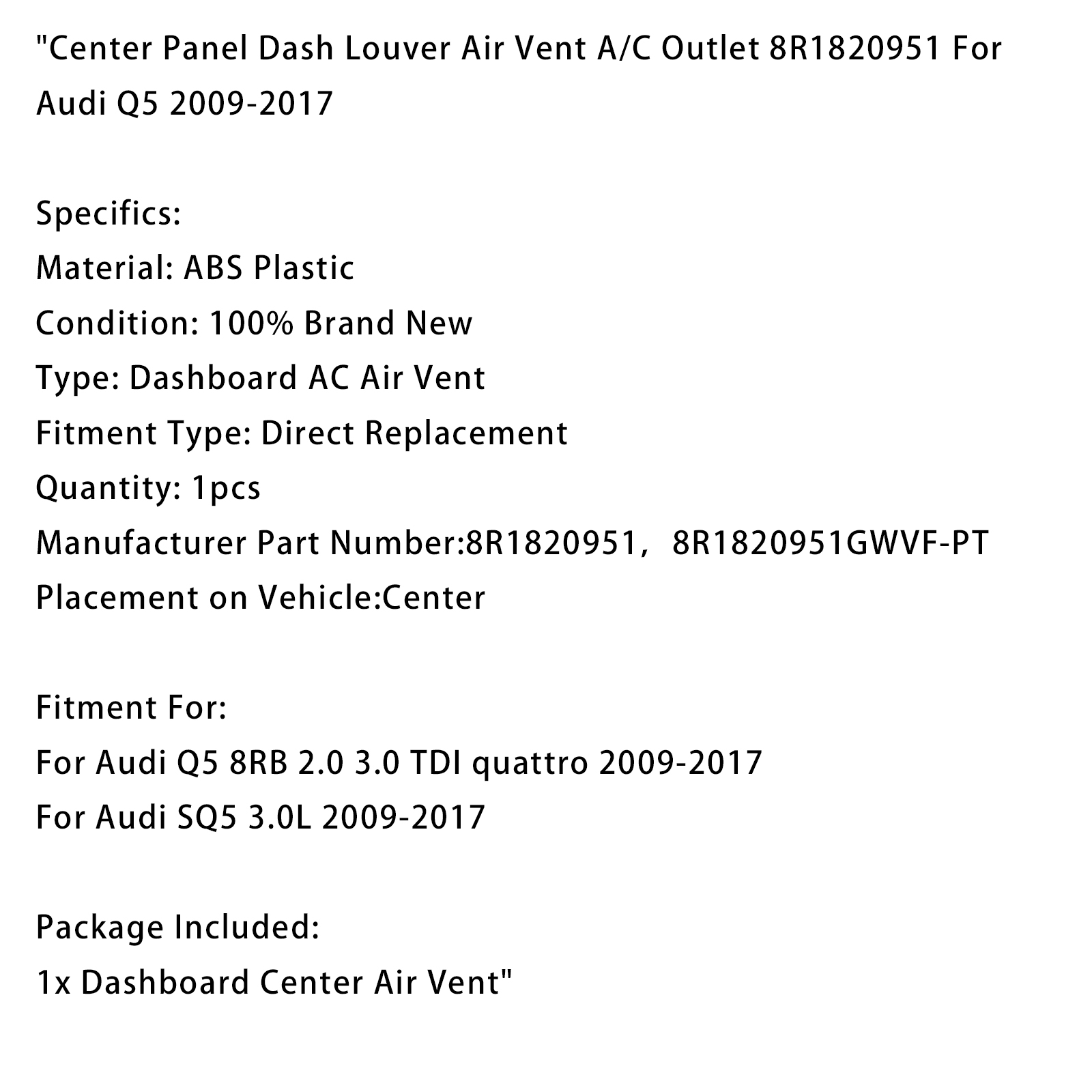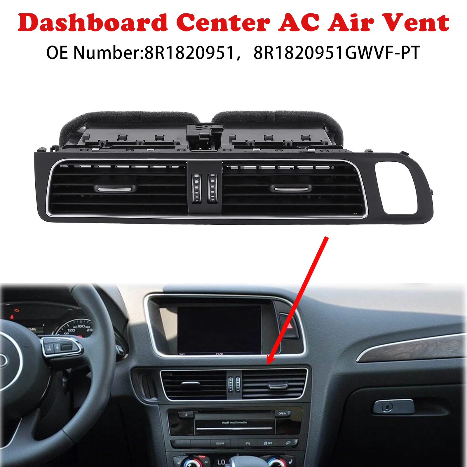 Center Panel Dash Louver Air Vent A/C Outlet 8R1820951 For Audi Q5 2009-2017