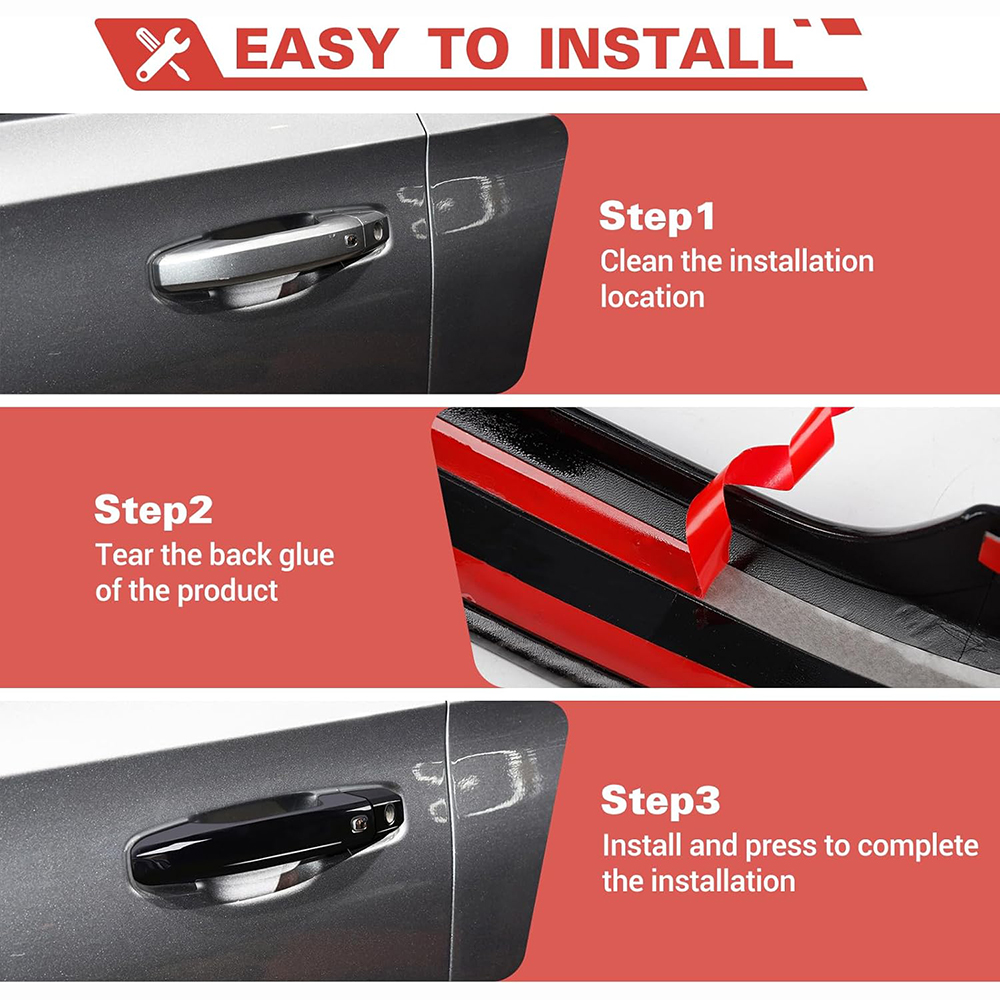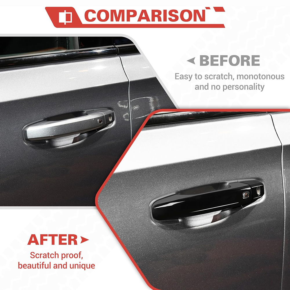 Protective Functionality: These door handle covers help keep your car handles clean and free from dust while covering existing scratches. They also act as a shield against potential scratches and abrasions, preserving the look of your vehicle.