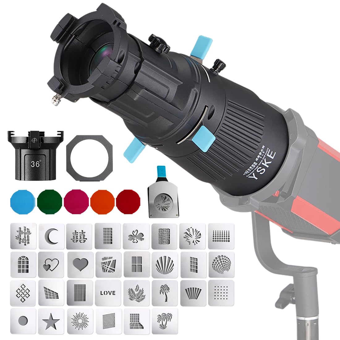 YSKE-Bowens Mount Spotlight Conical Optical Snoot kit 36°,Photography Studio Lighting Accessory with 30 Metal Gobos&5 Color Gels Focus ControlCompatible for Aputure Godox Nee*wer Profoto LED Lights