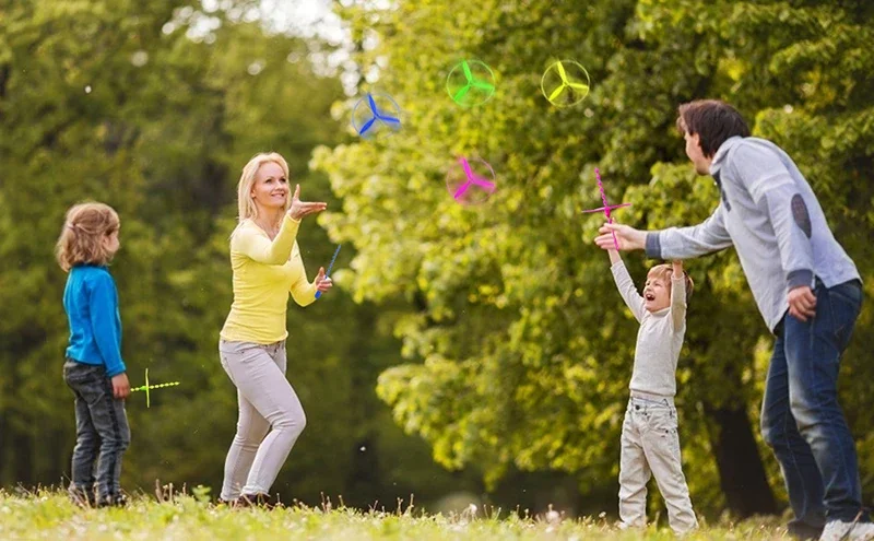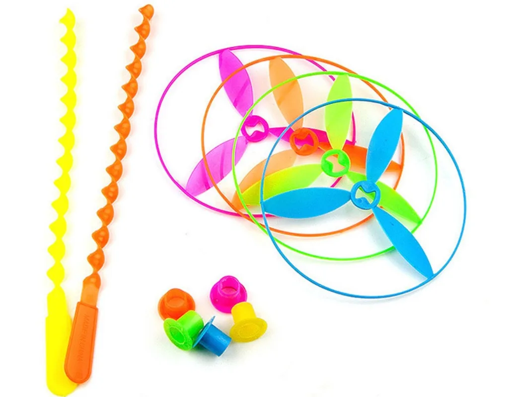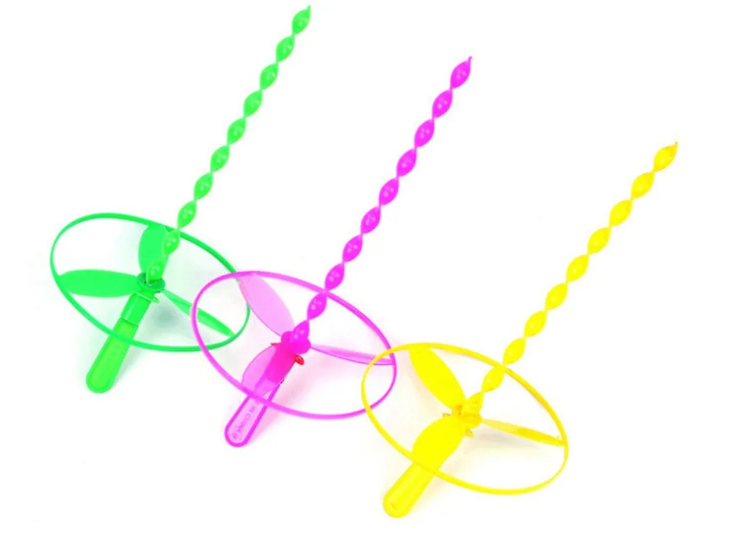 20set/bag Colorful Bamboo Dragonfly Plastic Hand Push Flying Toys Kids Birthday Party Favors Guests Treat School Goodie Filler