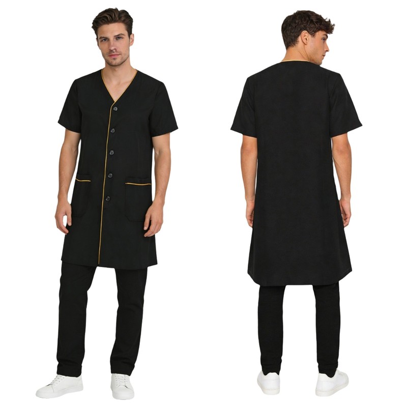 Short-sleeve style keeps you cool during work, which is a practical choice for beauticians or those in similar occupations who are often on the move.
