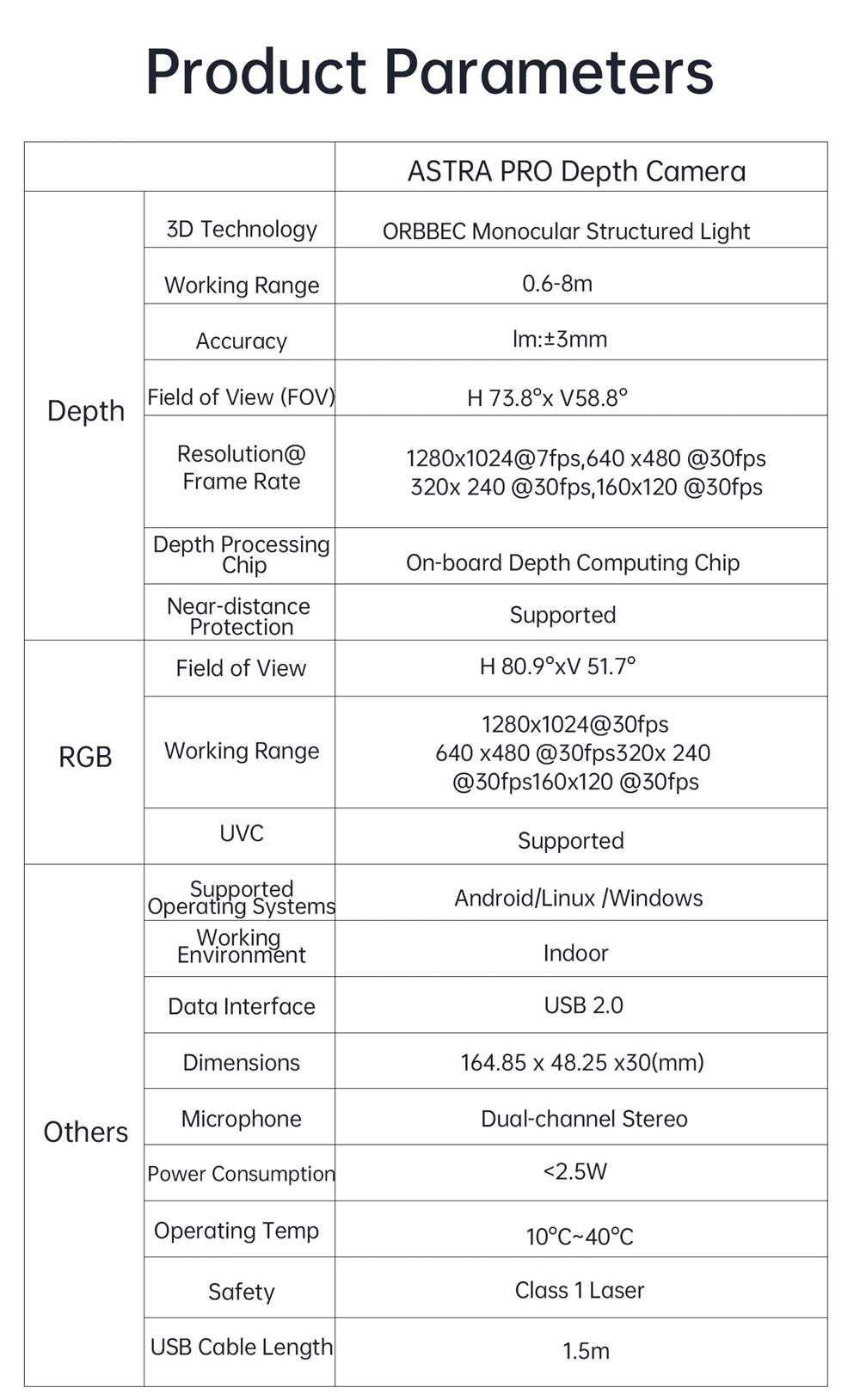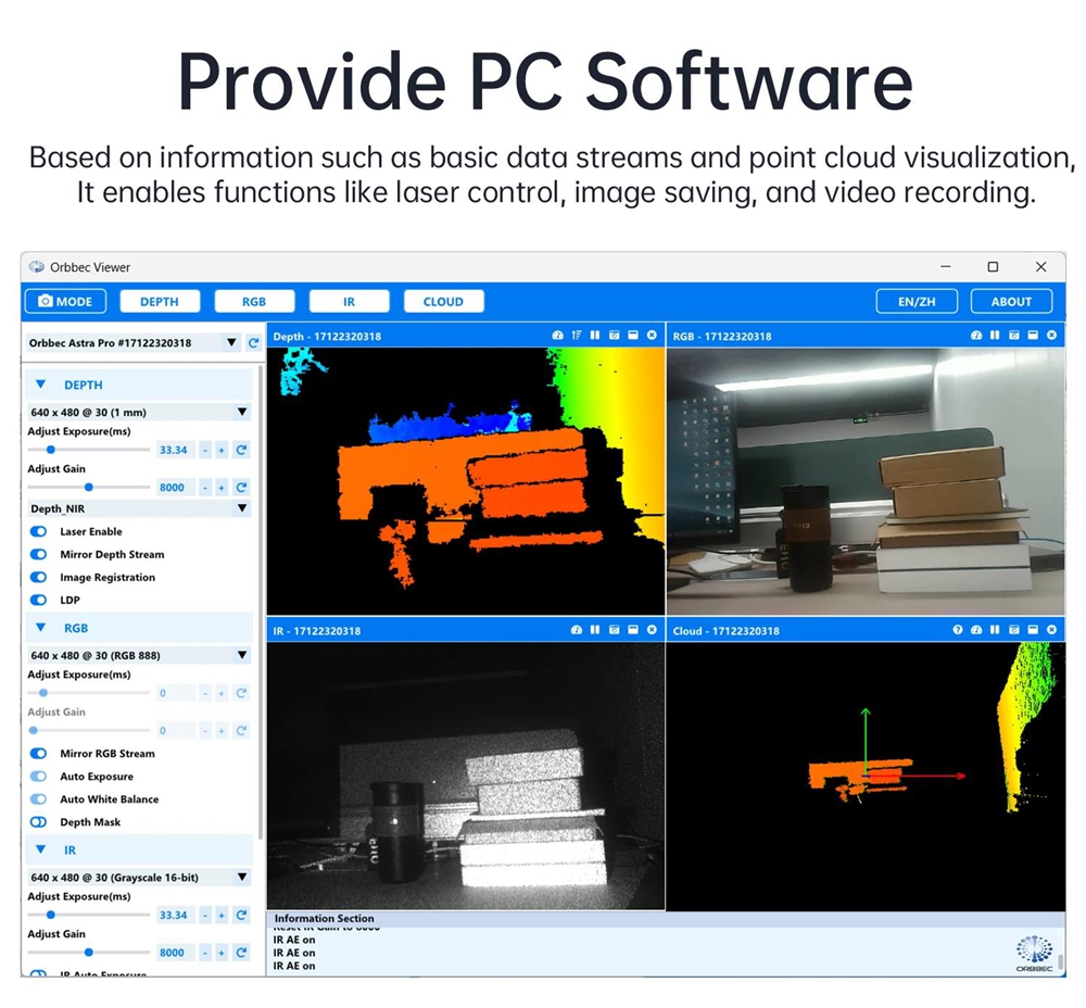 Astra Pro Depth Camera 3D Imaging Vision Recognition 0.6-8M Ranging for Raspberry Pi ROS AI Robot