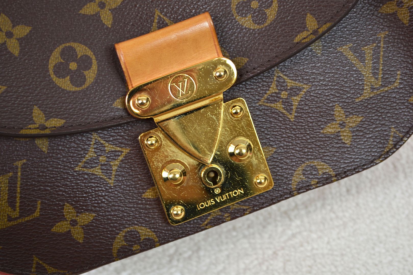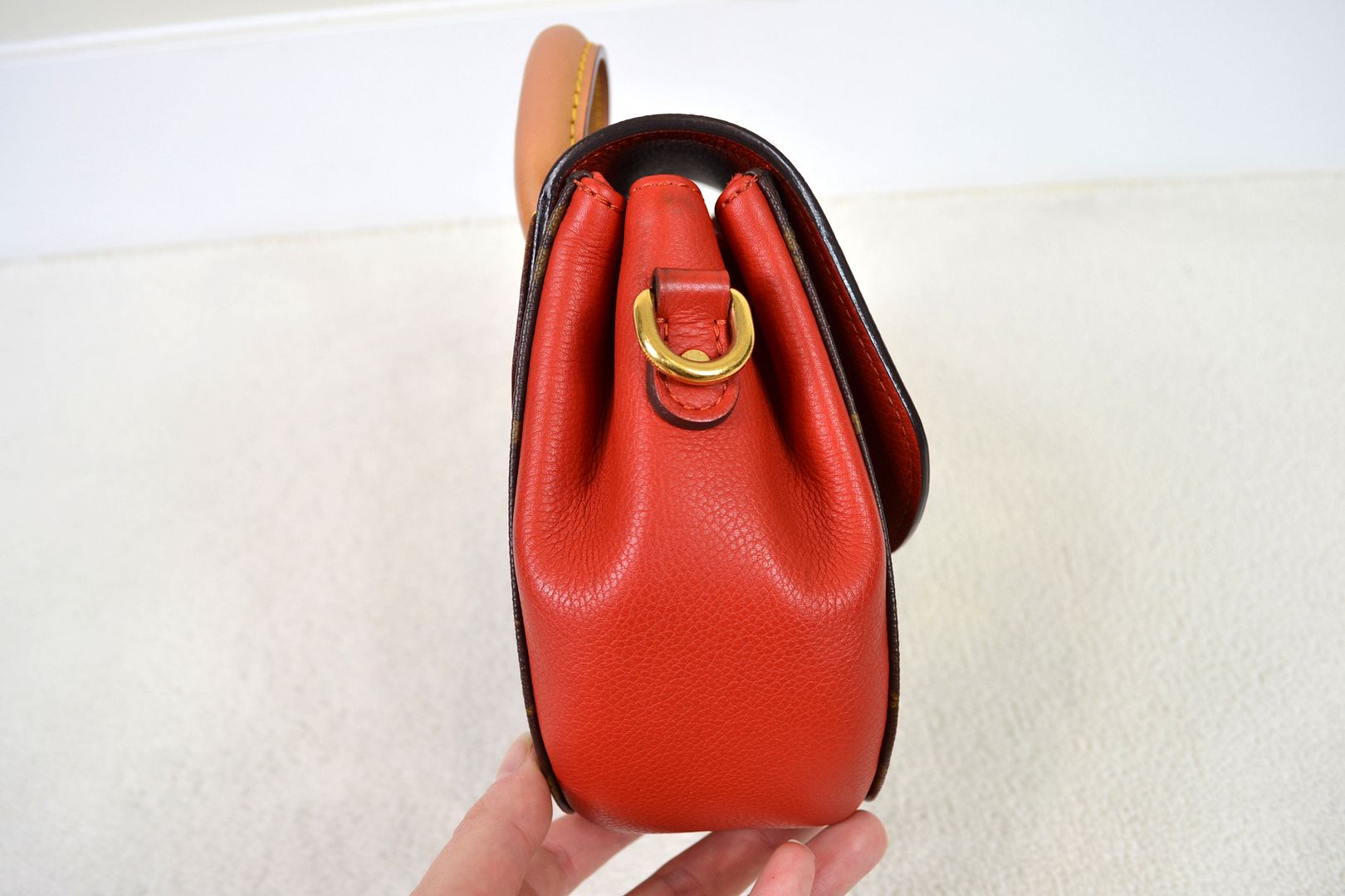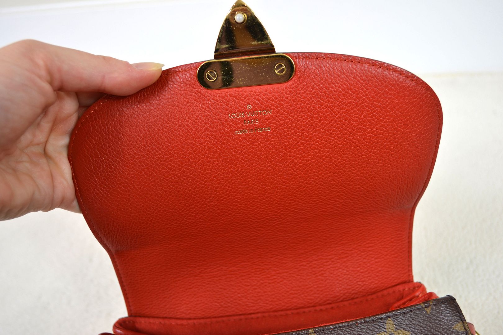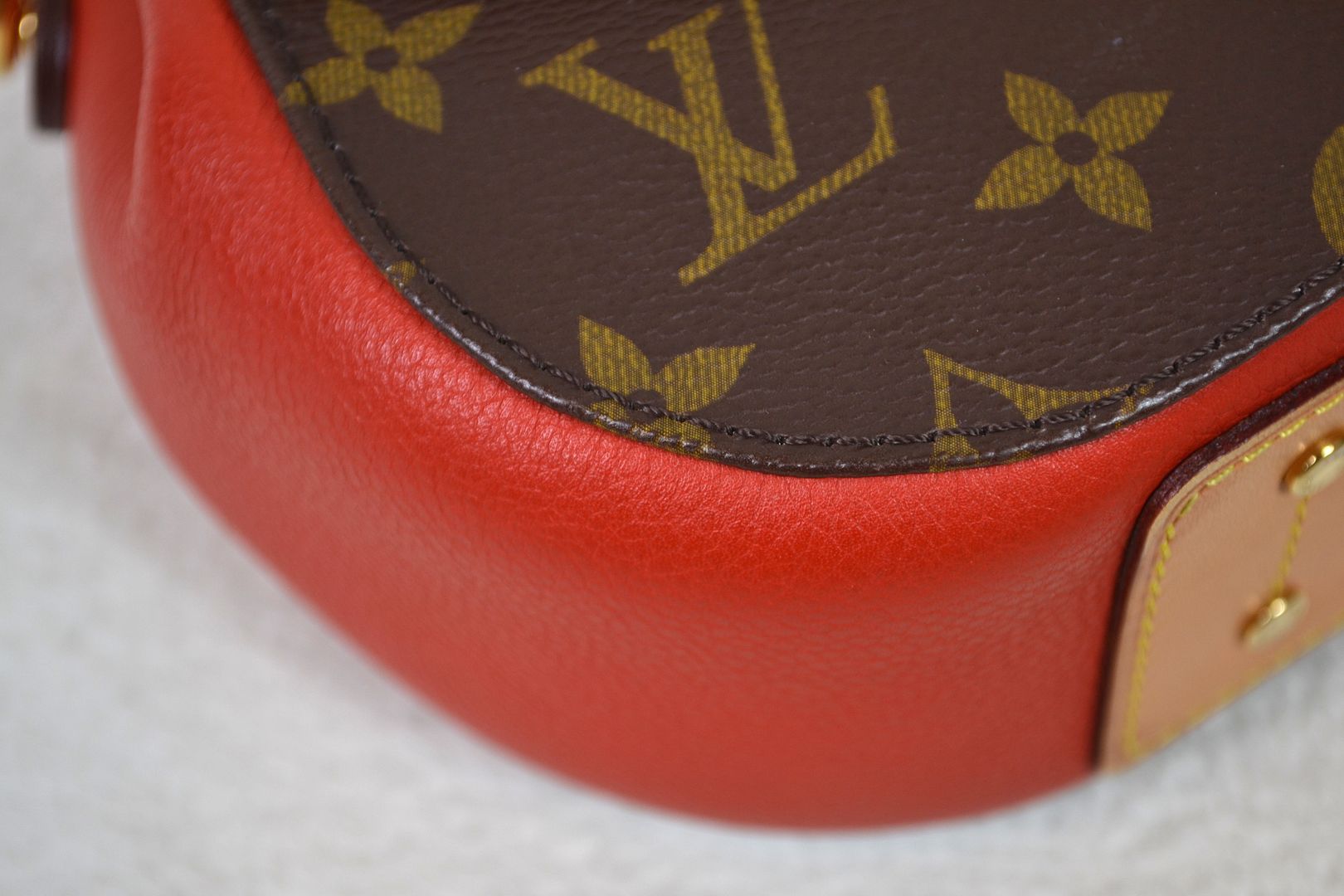 THIS HANDBAG WILL COME WITH THE LV KEYS! AUTHENTICITY: This bag will be authenticated by eBay's authentication program as known as "Authenticity Guarantee". As soon as it is purchased, it will first be shipped to eBay's authentication center for a multi-point inspection. eBay's authenticators verify dozens of inspection points, including packaging, handbag details, smells, authenticity, description accuracy, and accessories. Once verified as authentic, it will be shipped to you. eBay will provide an authenticity card and a high-quality eBay dust bag specifically designed for this brand! (Unconfirmed USA addresses & US Territory buyers do not qualify for eBay authentication!) ITEM CONDITION: This Louis Vuitton bag is in VERY GOOD CONDITION! The monogram canvas exterior is in overall great condition with signs of light rubbing wear on the bottom corners and tiny marks throughout. The red leather bottom and sides have signs of dark marks, dirt wear, and a rubbed spot. The vachetta leather bottom panel has signs of rubbing, scratches, dirt wear, and water spots. The gold tone hardware has signs of scratches, scuffing wear, spots, marks, and tarnishing in areas. The leather top handle and back leather panel have signs of scratches, scuffing, marks, dirt wear, abrasions, water marks, and the leather top handle features a repainting job with vachetta leather paint. The canvas strap has signs of wrinkling, marks where the buckle has sat, indention marks, edge rubbing, and light wear on the hardware. The interior is in great condition with light signs of dirt wear and lint inside. The underside of the flap is in great condition with minimal signs of wear. The bag smells nice and clean!____________________________________________________________________________