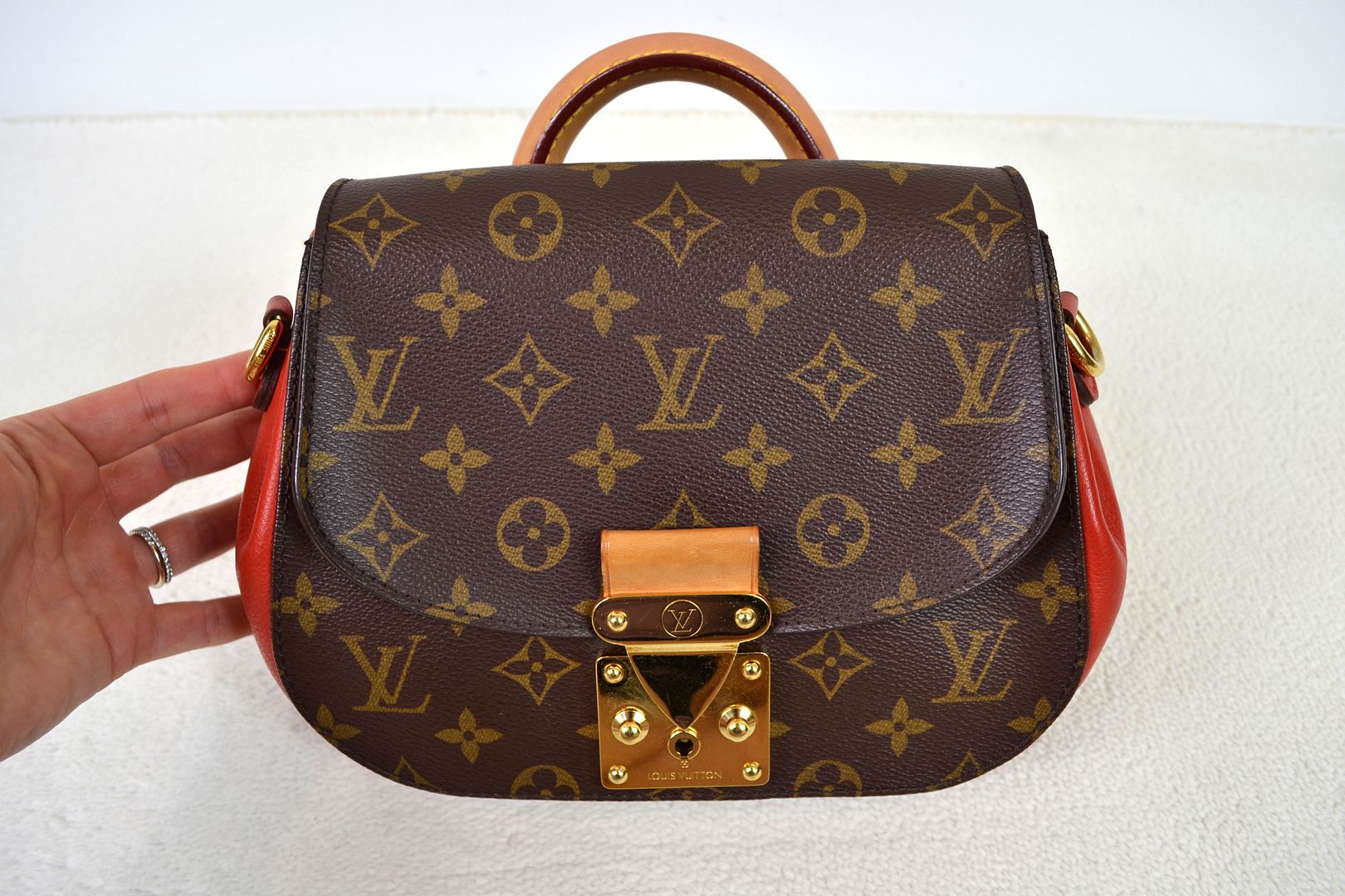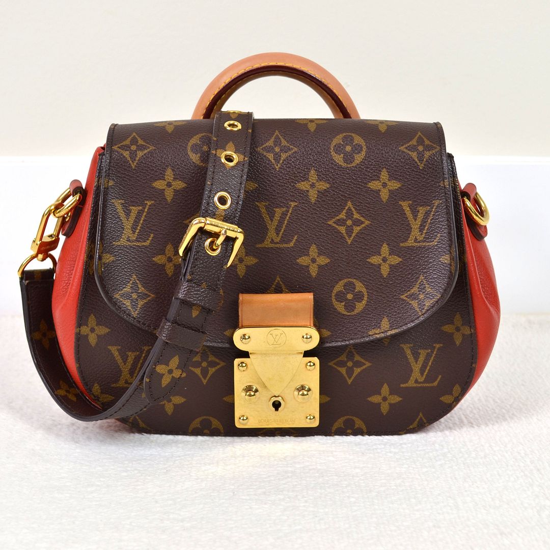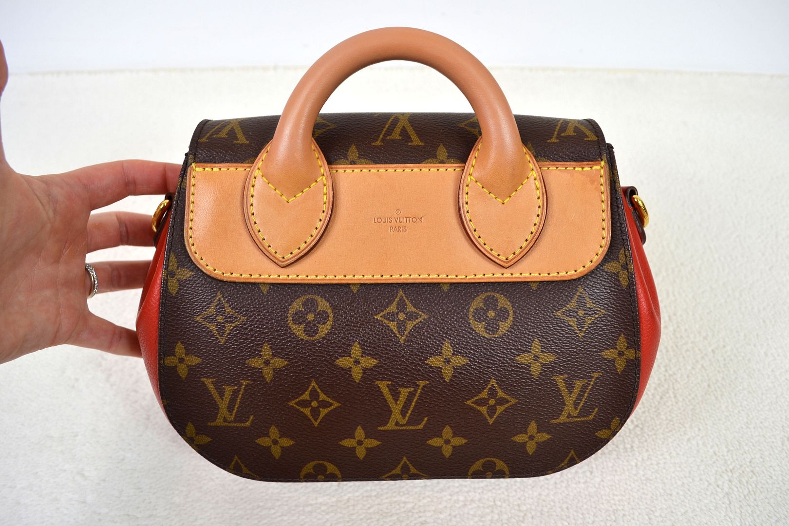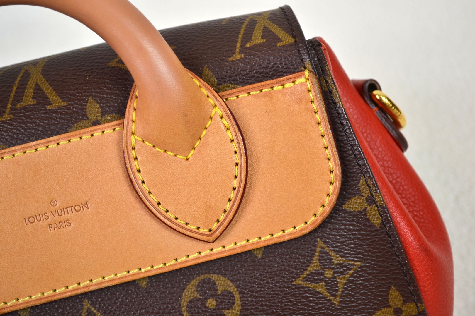 Louis Vuitton Eden PM Monogram Canvas Red Leather Top Handle Satchel Shoulder Bag #AR0143!