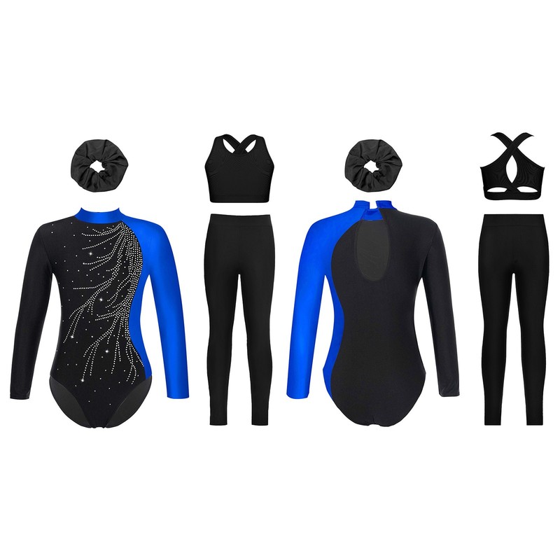Girls Ballet Gymnastics 4Pcs/Set Skating Jumpsuit Figure Unitard Dancewear Jazz
