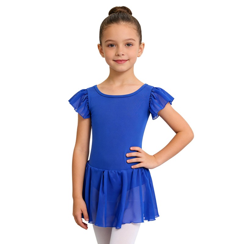 Made from a blend of polyester and spandex, the dress is stretchy and comfortable, allowing for unrestricted movement during dance routines.