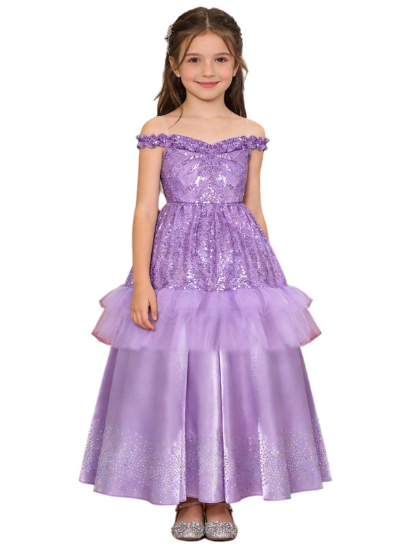 The off-the-shoulder design is a trendy fashion element, and the tiered ruffled hem gives the dress a playful and romantic look, making your girl stand out.