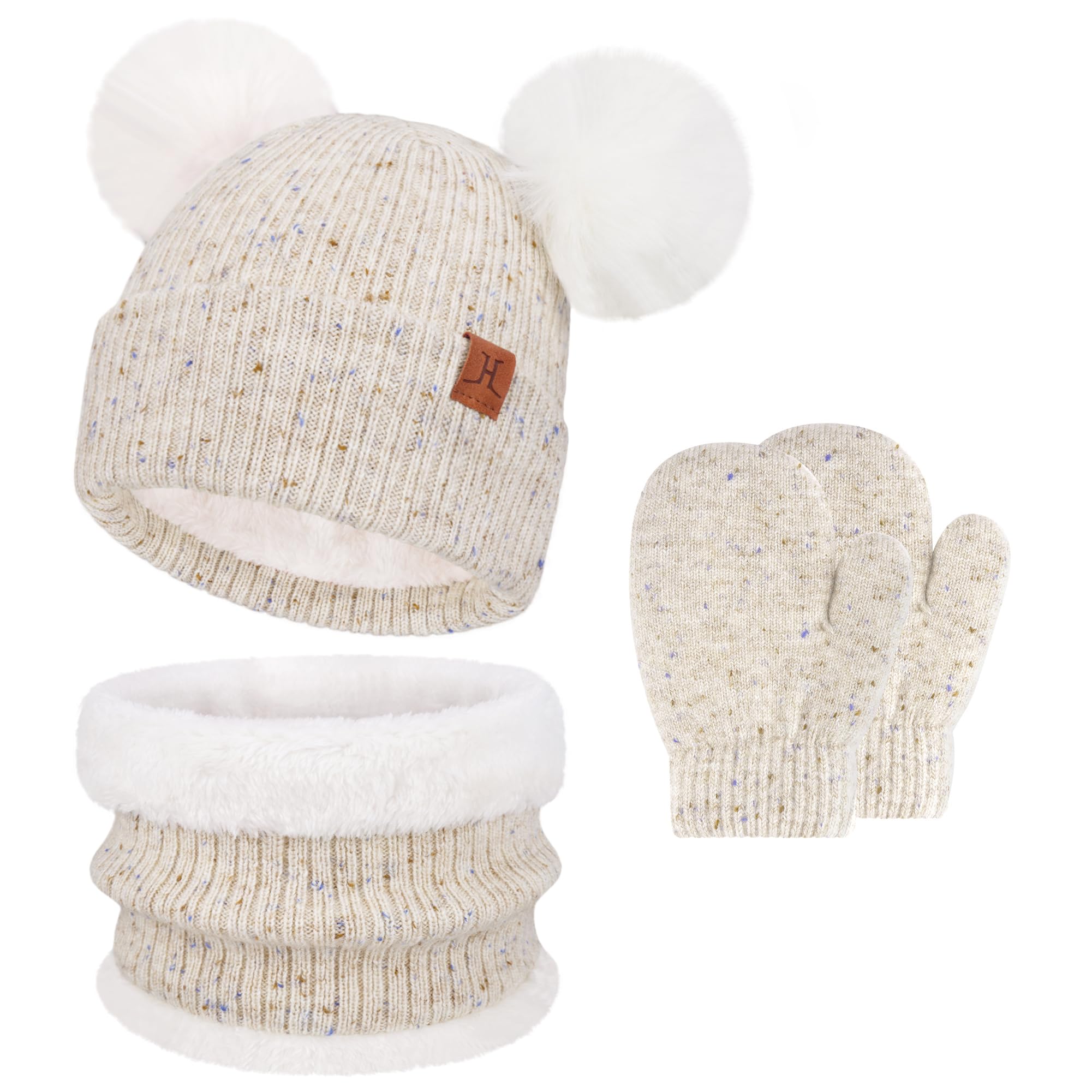 - 【Premium Quality】Toddler winter hat sets are made of Acrylic Nylon Polyester Wool-blend, good elasticity, good stretchability to grow with the baby, soft and comfortable to wear, warm and skin-friendly, caring for the kid's skin. The best fabric for your best baby girl and boy.