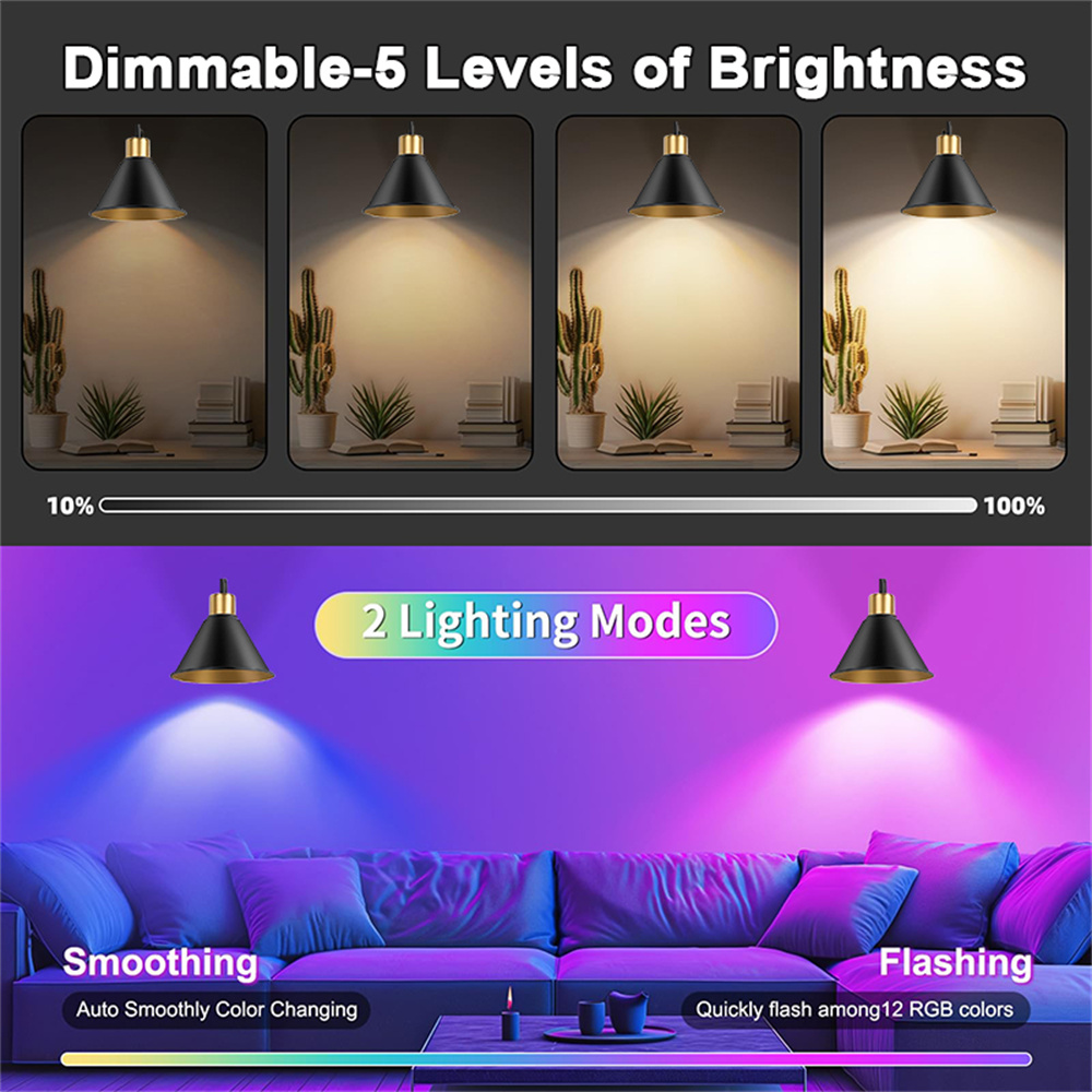Up to 13 Colors Selectable & 5 Dimmable Brightness: The 1 daily color temperatures(Warm White), plus 12 RGB colors options and 5 dimmable brightness feature, provide an entertaining and colorful lighting experience. The color changing wall sconce features 5 dimmable brightness, flash and smooth modes, meet your need for study, rest, entertainment, or add ambiance.