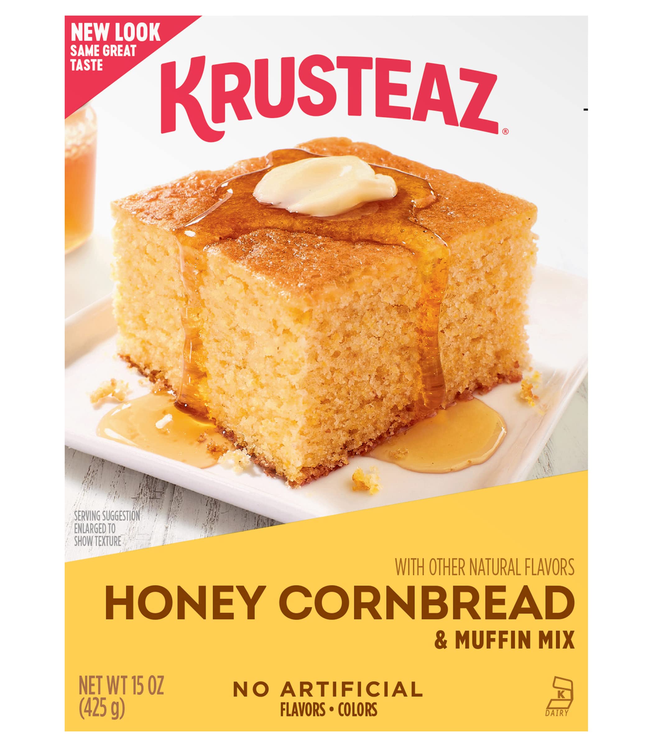 - MAKE IT YOUR OWN: Use this Krusteaz Honey and Cornbread Muffin Mix to make a batch of 24-28 mini muffins, 12 standard muffins, or cast iron skillet bread. Serve up a spicy version by adding jalapenos and cheddar, or deal up the sweetness with goat cheese and caramelized onions. With Krusteaz, one mix means endless possibilities.