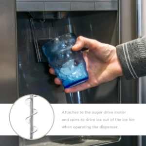 Dispenser auger WR17X11939 rotates to push the ice from the ice container into the dispenser chute