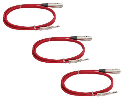 3 pack: Balanced 1/4 TRS to XLR female Cable - 6ft RED