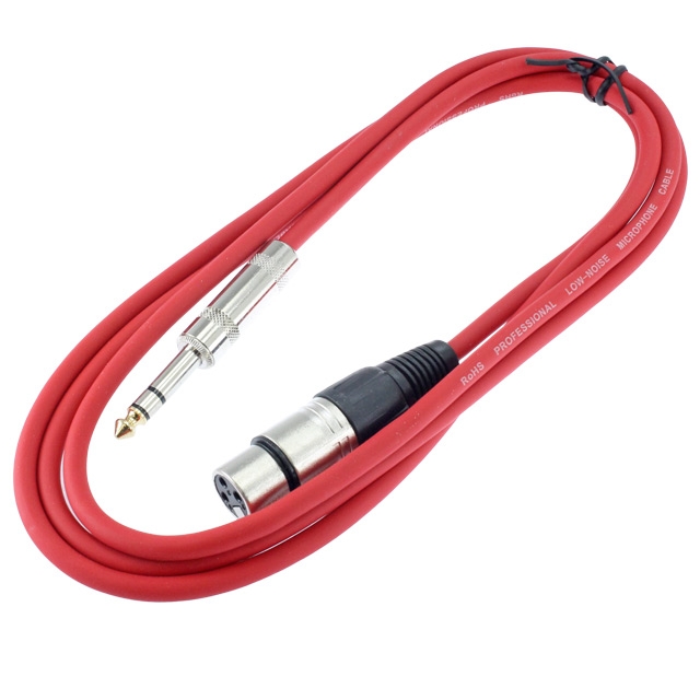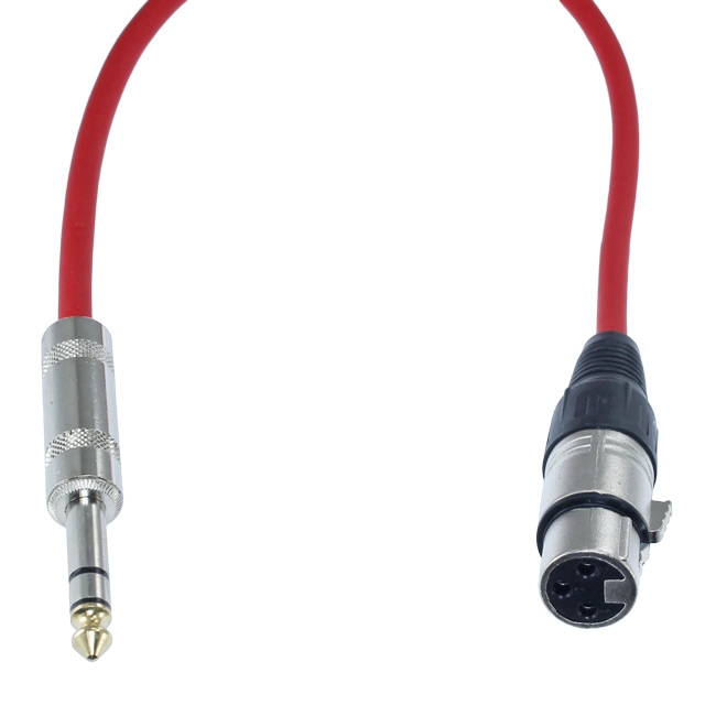 6ft red cable with a male stereo (TRS) 1/4" plug on one end and a female XLR plug on the other end. Quality balanced and shielded cable. Professional, Flexible and Durable Noise Free Cable. Perfect for connecting a microphone to a 1/4 balanced input or using as a patch cable for rack gear.
