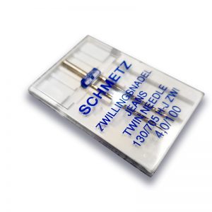 Great for denims, leather and suede, the Twin Jeans Needle allows you to sew two rows of stretch stitching at the same time. Constructed with two needles on a cross bar from a single shaft while using two spools of thread and one bobbin.