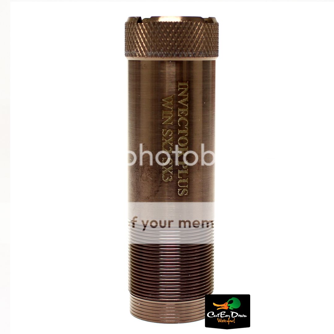 | PATTERNMASTER'S CODE BLACK DECOY tubes will extend out the end of your barrel about 3/8 of an inch and has an effective range out to 40 yards. You will see a pattern similar to an Improved Cylinder constriction choke on paper, but because of the patented "stud ring" inside the tube, there is a much shorter shot string. This shorter shot string will allow more shot on target all at once so your down range energy is sure to kill instead of cripple. Our DECOY tubes can be used with steel or other non-toxic ammunition as well as lead, and with 2 ¾" 3" and 3 ½" shells. Pick your favorite shot size to use which can range from 8 to T-Shot Non-Toxic/Steel and Lead 8 to 000 Buck. CODE BLACK DECOY tubes only come in a Non-Reflective Bronze color and are not ported but have a knurled end for hand tightening. Patternmaster CODE BLACK tubes are made of Carpenter Custom 630 (aircraft quality) 17-4ph stainless steel, Bronze Titanium coated, and are heat treated to the optimum level for best performance. Note: Testing done by Ballistics Performance has determined that ammunition with velocity of 1550fps and below will achieve the best results with Patternmaster Tubes. Not for use with ammunition containing flight control wad or slug ammunition. Patternmaster's 12ga Browning Invector Plus/Win SX2, SX3 will interchange with Browning Gold, Silver, Maxus, 2012 Citori & Cynergy, BPS; Winchester SX2, SX3, Supreme and Select Energy; and Marrochi Golden Snip Field O/U. For more information regarding the interchange please consult the firearm manufacturer. This listing is for one Patternmaster Code Black Choke Tube. You can buy with confidence as we are an Authorized Patternmaster dealer. Feel free to contact us with any questions you may have. |