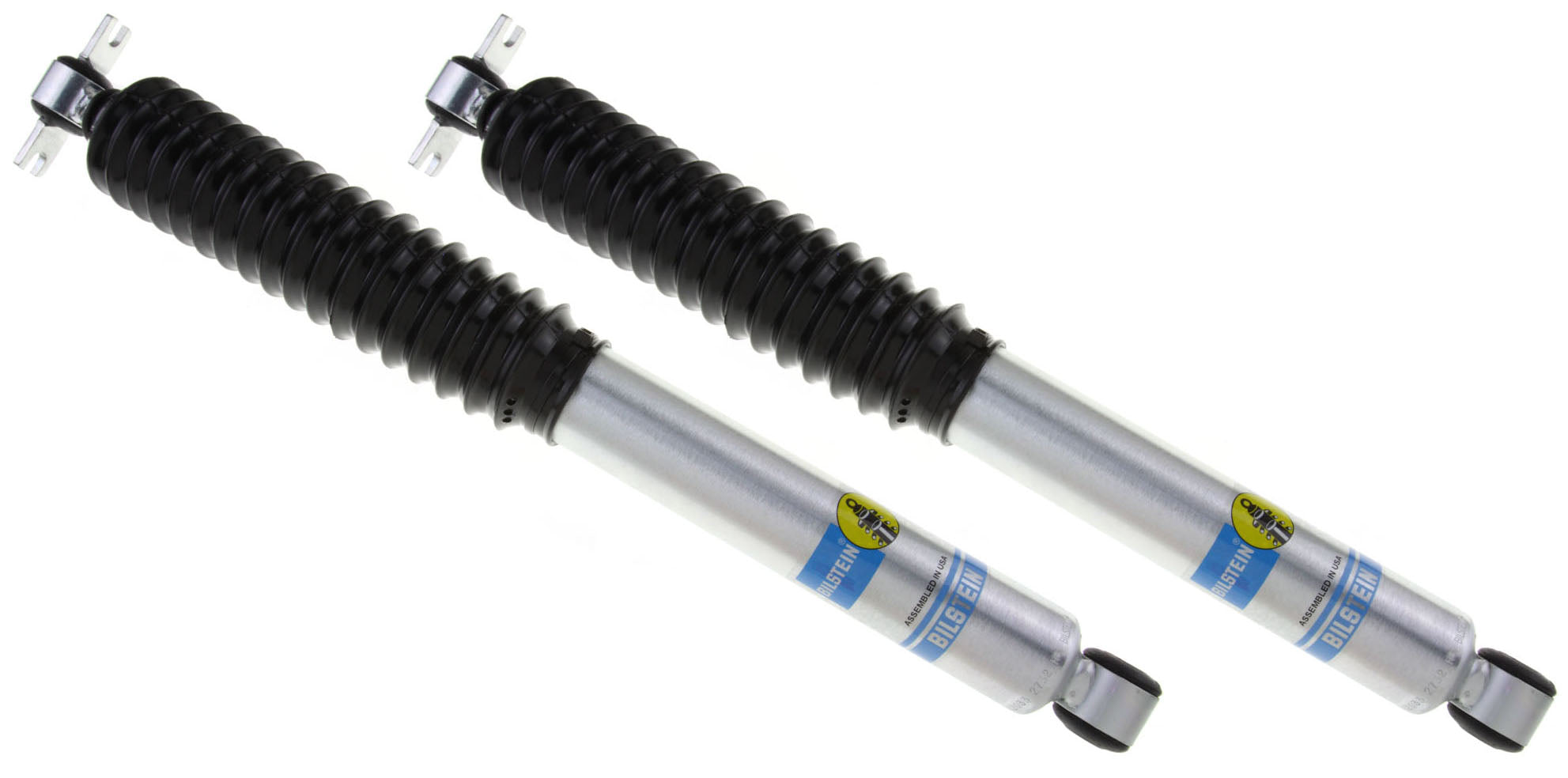 Bilstein 5100 Series Shock Absorbers are high gas pressure monotube shocks designed specifically for lifted pickups, SUVs and Jeeps. The shocks feature a 46mm digressive piston with self-adjusting deflective disc valving. They offer super damping ability that makes them ideal for heavy hauling or occasional off-road use, while maintaining an exceptional street ride.