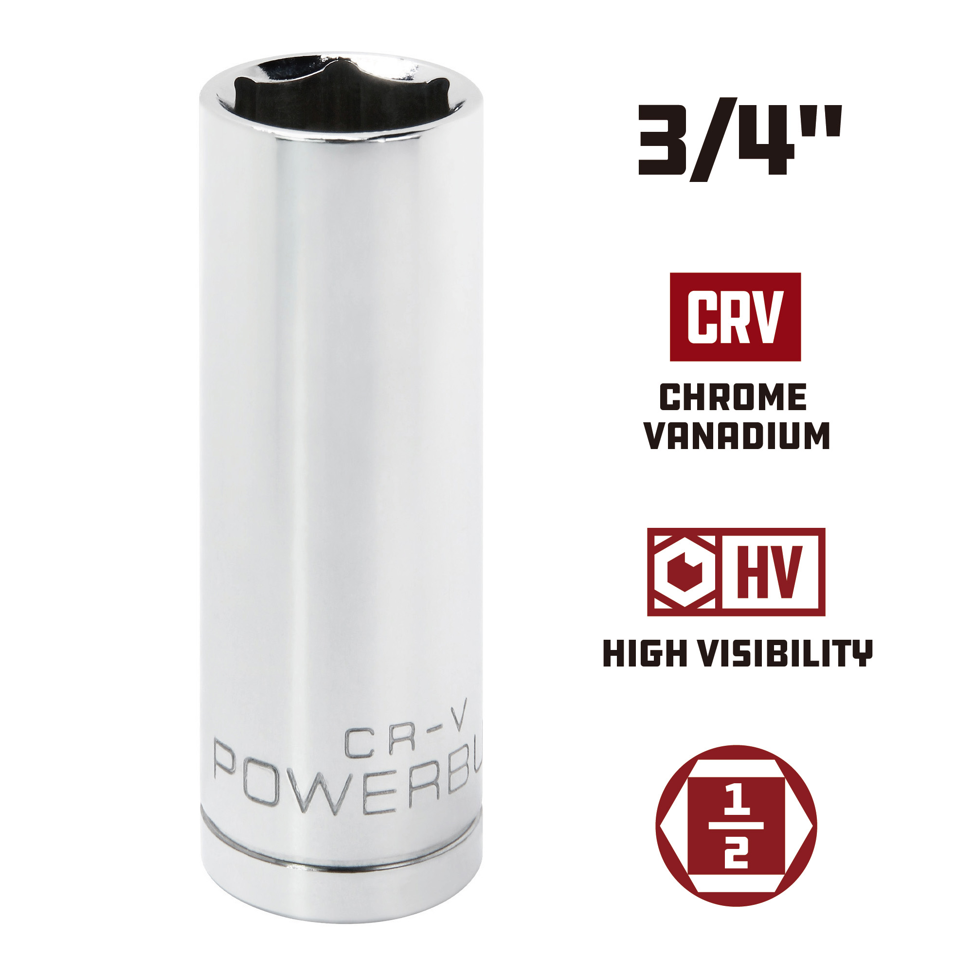 Powerbuilt 1/2 Inch Drive x 3/4 Inch 6 Point Deep Socket - 642203