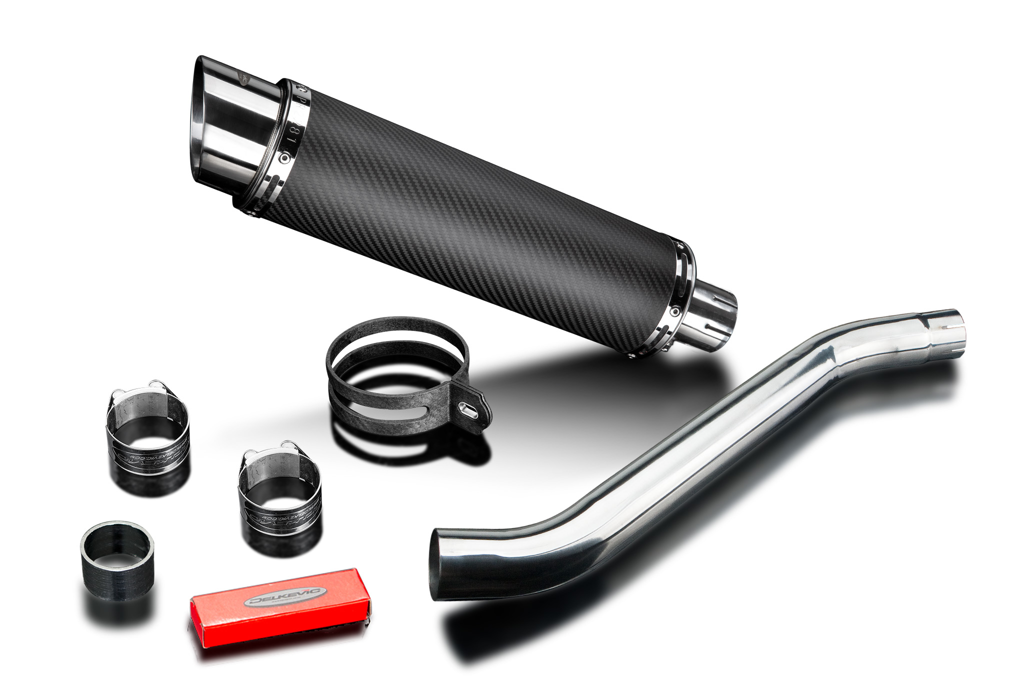 - This set includes - Delkevic silencer with a removable baffle, link pipe, strap, clamps, and gasket.