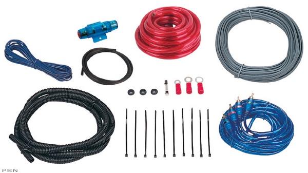 Includes: - 20Ft 8 GA Power wire -Fuse holder -3ft 8 GA ground cable -16Ft 18 GA Amp power up wire -20ft High proformance RCA cable -30Ft speaker wire -6ft of wire loom - Wire ties -3 rubber grommets -#10, 5/16",1/4" ring terminal as shown