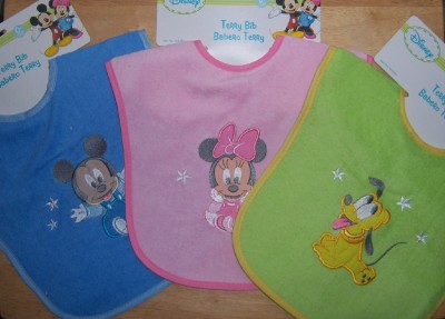 You are purchasing 1 New Disney Mickey Mouse, Minnie Mouse, or Pluto applique bib.