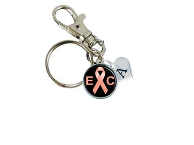 Custom Endometrial Cancer Awareness Peach Ribbon Silver Key Chain Initial Family Charm