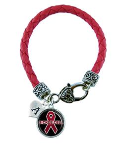 Customize this beautiful Sickle Cell Awareness leatherette bracelet with yours or a loved ones initial in a silver heart charm or you can add a family member charm such as: sister, mom, grandma, bff, etc...