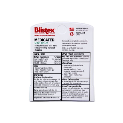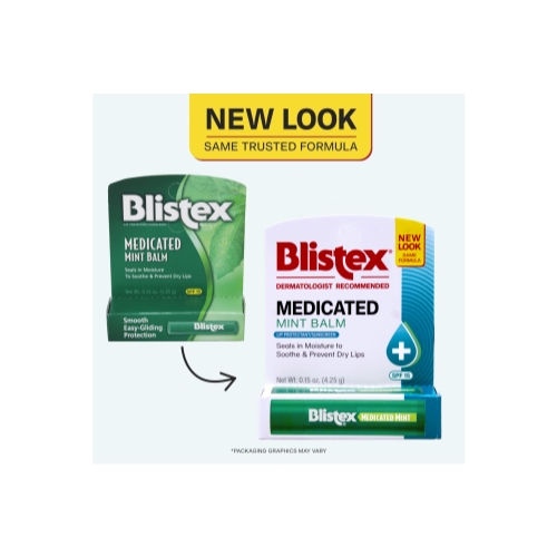3 Pack Blistex Medicated Mint Balm Spf 15 0.15 Oz Each