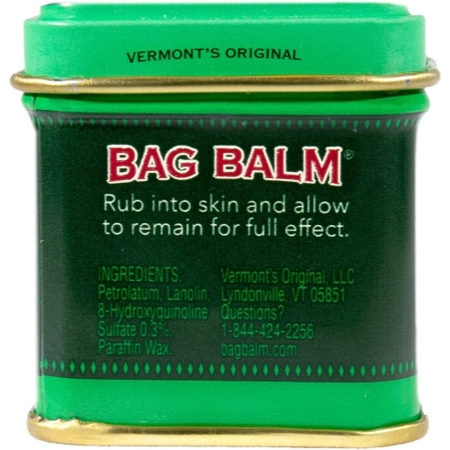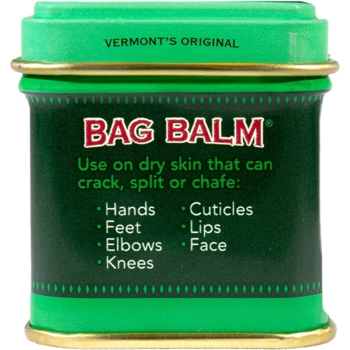 Bag Balm is the ultimate skin care solution. Whether your skin is dry, chapped, cracked, calloused, or just rough, Bag Balm will moisturize, soften and help heal any skin problem you have. Born on a Vermont dairy farm in 1899, Bag Balm has been the farmers friend, helping to protect their skin from becoming chapped from the harsh winter climate and the hard work on the farm. There is nothing like the original udder balm, and that's what you get when you buy the familiar green tin. Bag Balm Works Wonders.