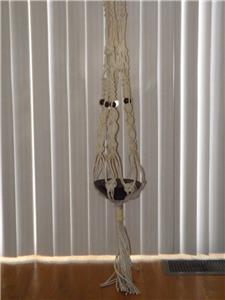 For sale is a Fabulous 7' Macrame Beaded 2 tier Plant Hanger in a very good condition. The plant hanger can hold both a 8" and 12" flower pot.