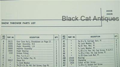 Up for sale, we are offering an original, 1974, illustrated parts list for the MTD snow thrower attachment. Included, are detailed diagrams/exploded views with corresponding parts lists for models 2650B and 2680B. Please enlarge the pictures for a closer look.
