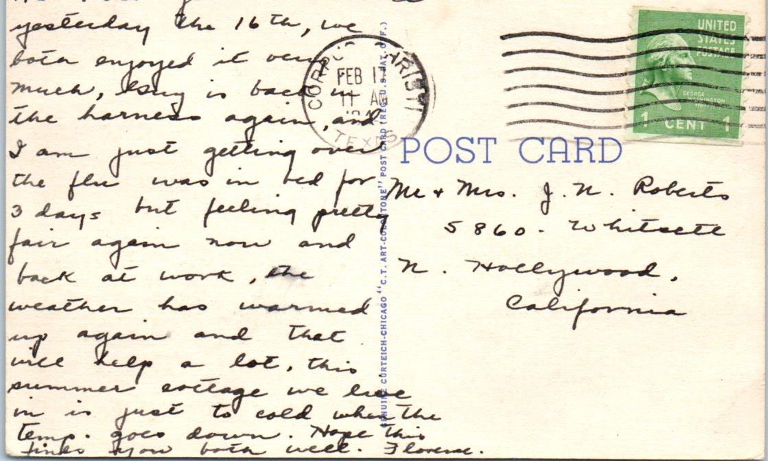 Occasionally postcard backs (usually real photo) will appear yellowed, which is a flaw from my scanner. If there is no staining mentioned in the condition statement, the card is not discolored. Also if odd colored lines appear this is also a scanner defect unless mentioned. Add me to your Favorite Sellers and feel free to email me with questions about item conditions as I try to describe them accurately. Please Visit My eBay Store, new items are added every week.