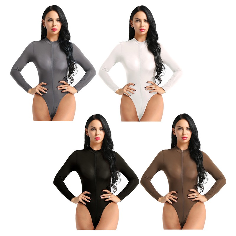 Womens adult wetlook dance leotard, stretchy fabric.