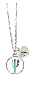 Custom Cactus Pendant Silver Chain Necklace Choose Initial Charm All 26 Avail