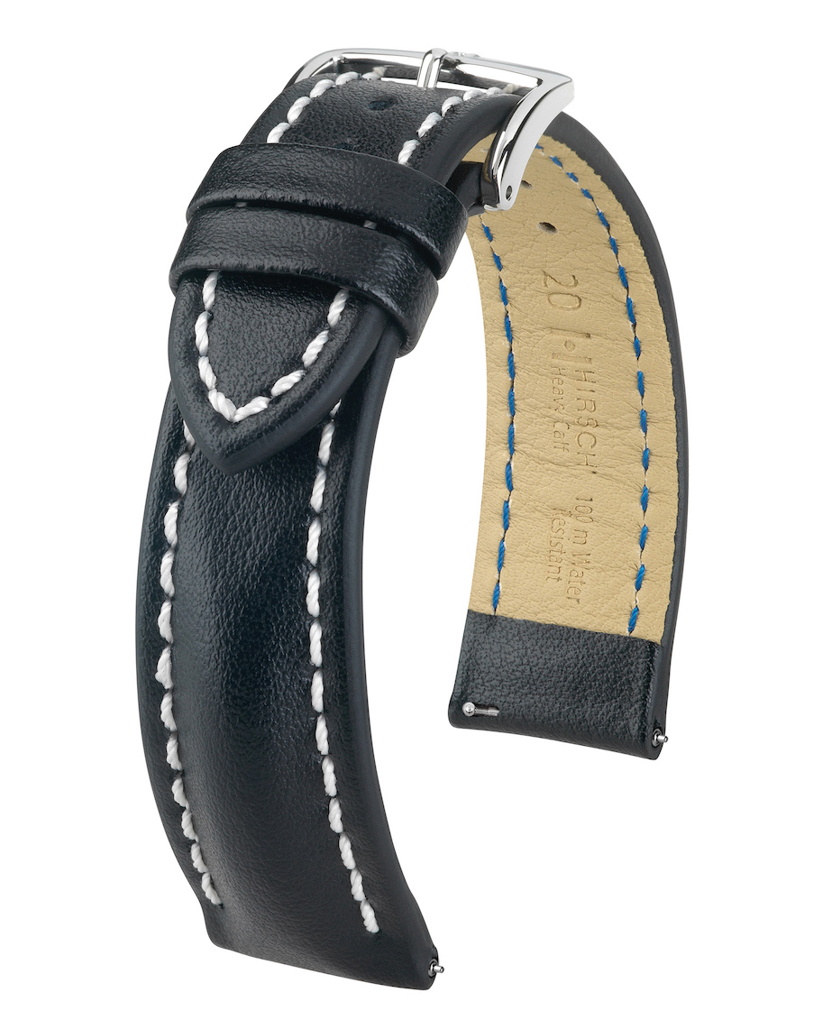 The strap comes with a high-quality, polished spring-bar buckle (replaceable) by HIRSCH Classic Design, made from nickel-free L316 stainless steel and 2 fitted HIRSCH Quick-Release spring-bars.