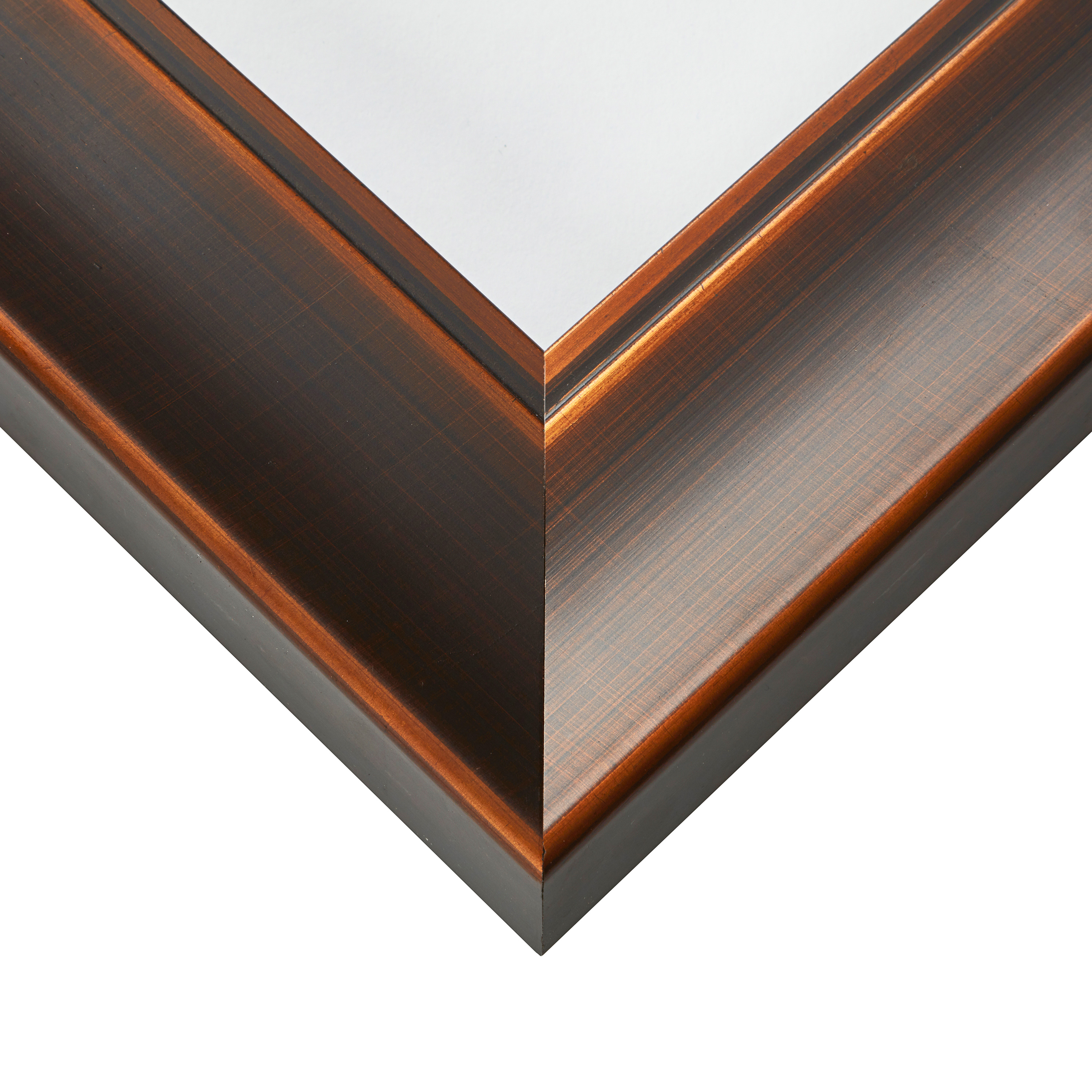 With clean rectilinear lines and a concave stepped profile, the Metropolis 200 picture frame is ideal for most modern decor needs. Featuring moulding with a composite wood core and laminate wrap, this sleek 2" picture frame comes finished in Antique Bronze. With some Smooth White matting you can elevate your prints to the next level. Sharp and bold, Metropolis 200 Antique Bronze picture frame is the perfect touch of modern.