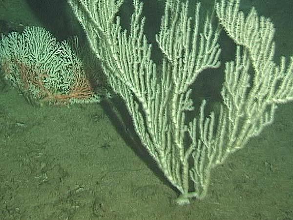 Scientists in New Zealand and Australia have taken bamboo coral colonies 30 ft tall, with “trunks” 13 in. across, from seamounts in the region. A 4 ft specimen, sampled from Warwick Seamount on the 2002 Gulf of Alaska cruise, was aged to 70 yrs. Those larger colonies may be 500-years-old.