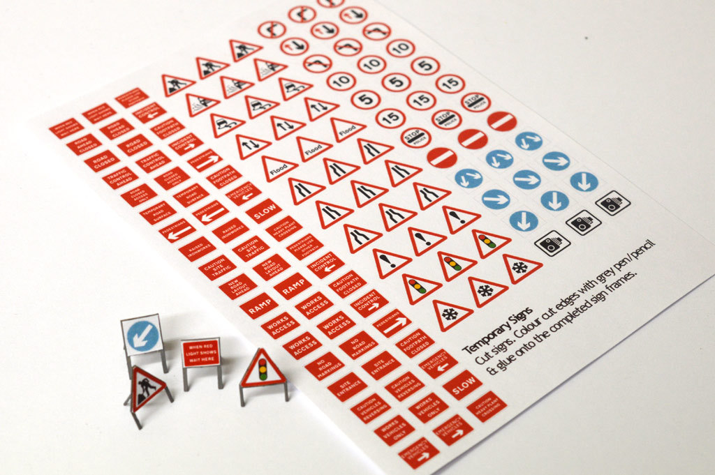 Make your own realistic temporary road signs for your OO gauge model railway.