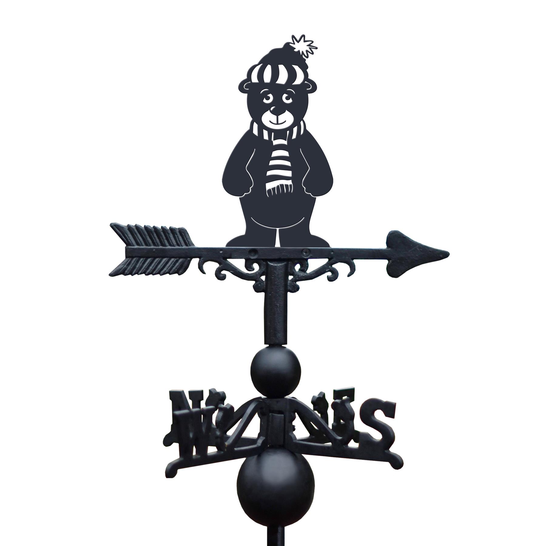 This weathervane features a teddy bear design and would be a lovely themed gift for family and friends. An adorably classical teddy bear silhouette adorns the top of our traditional cast iron weathervane, for an entirely unique outdoor feature. The teddy decoration is charming in detail with a matching hat and scarf and enchanting expression. This piece comes complete with an integral, multi-way bracket that can be fitted to any shed, house or outdoor wall space in either a vertical or horizontal position.