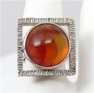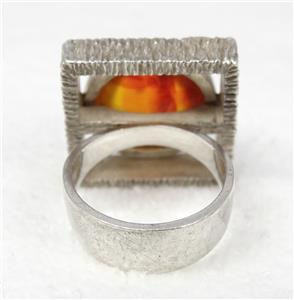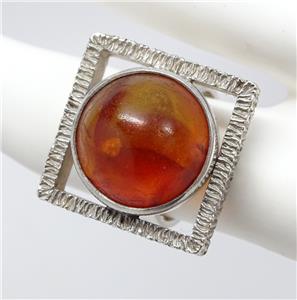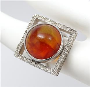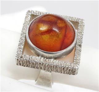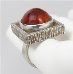 Big Bold Vtg Danish Modernist Sterling & Amber Ring Einer Fehrn Denmark Size 6