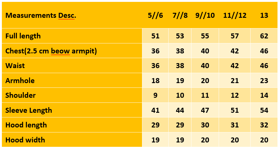 Boys Plain Fleece Hooded Zipper Size Guide: