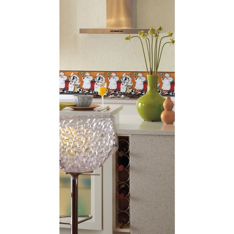 A bevy of whimsical Italian chefs bring bread, wine and pasta to the table in this distinctive 9 border of orange, black and white. European flair and contemporary images make this bistro a true delight to the designer palette!