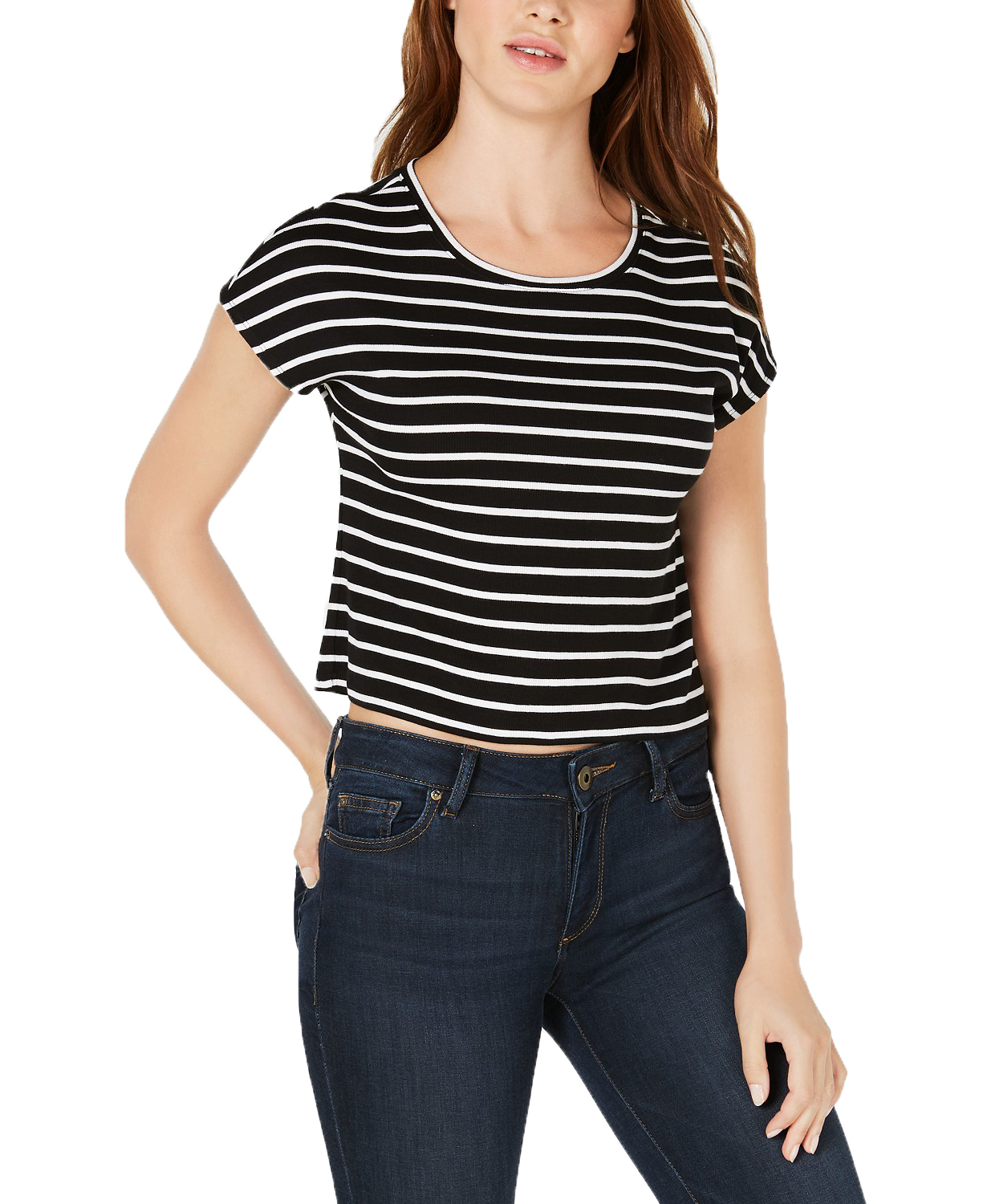 Bar III's T-shirt keeps your look cute and cropped in a striped ribbed knit.